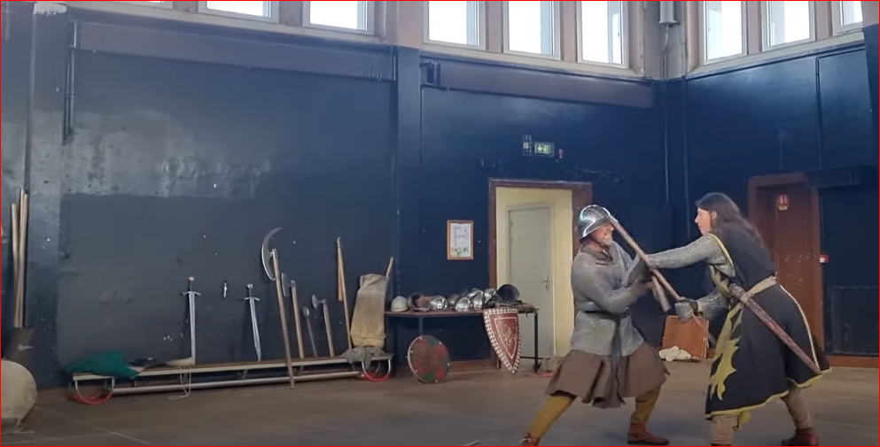 Après une présentation générale ayant réuni toutes les classes de 5e, deux groupes ont été formés : pendant environ 1h30, certains élèves ont assisté à l’atelier sur la vie quotidienne au Moyen-Âge, tandis que d’autres ont essayé des armures. Par la suite, les groupes ont été interchangés.