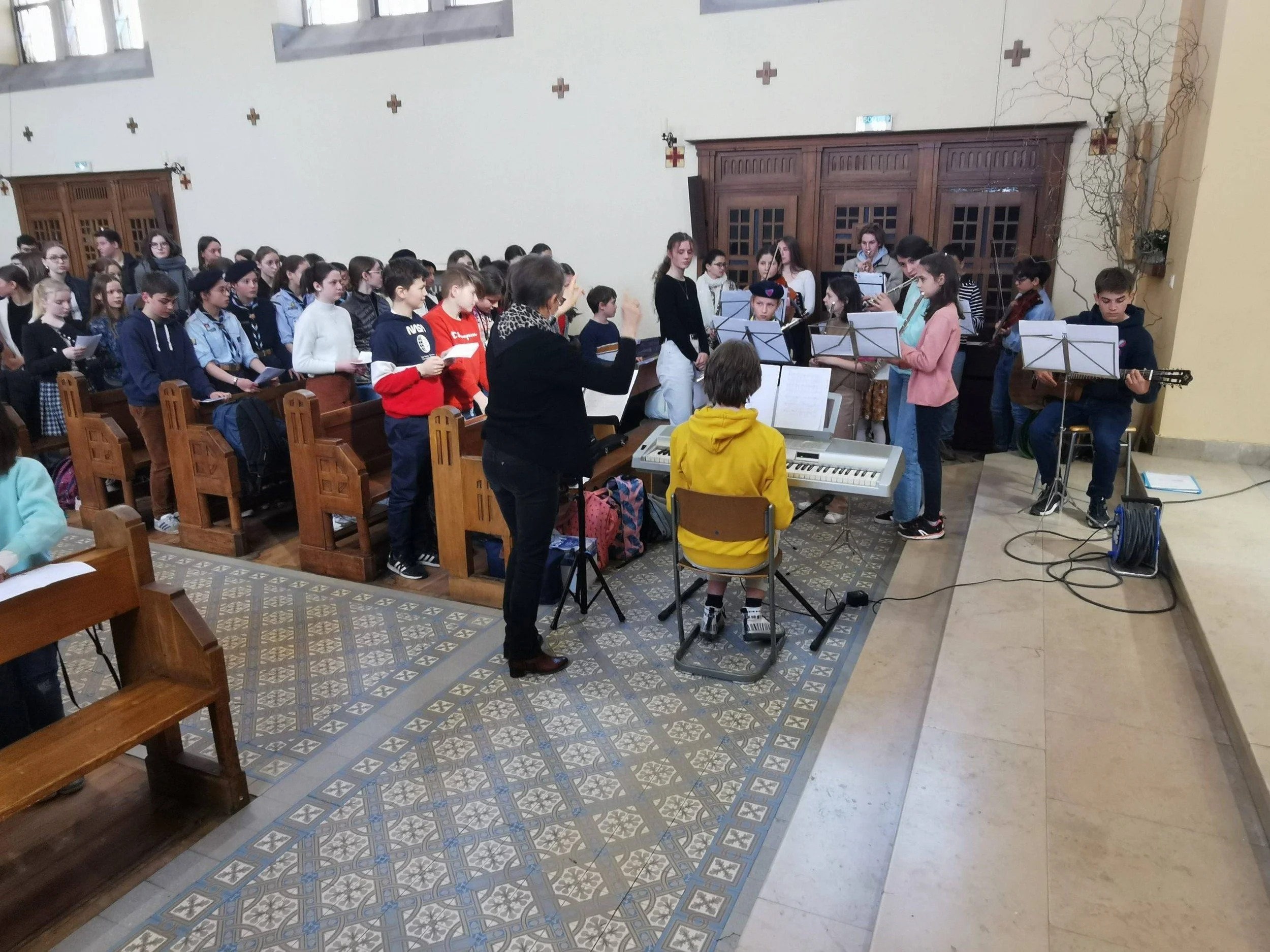 Ce mardi 4 avril 2023, nous avons pu, grâce à l’abbé Pierre Luong, recevoir la bénédiction du Père Pierre ou l’eucharistie, lors de la messe de montée vers Pâques. Elle a été réhaussée par la présence des enfants de chœurs , la chorale et les musiciens de Saint-Antoine, ainsi que les guides et scouts d’Europe de Sarrebourg présents au sein de l’établissement.